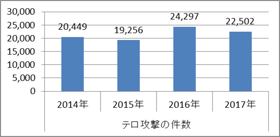 ①世界テロ件数の推移